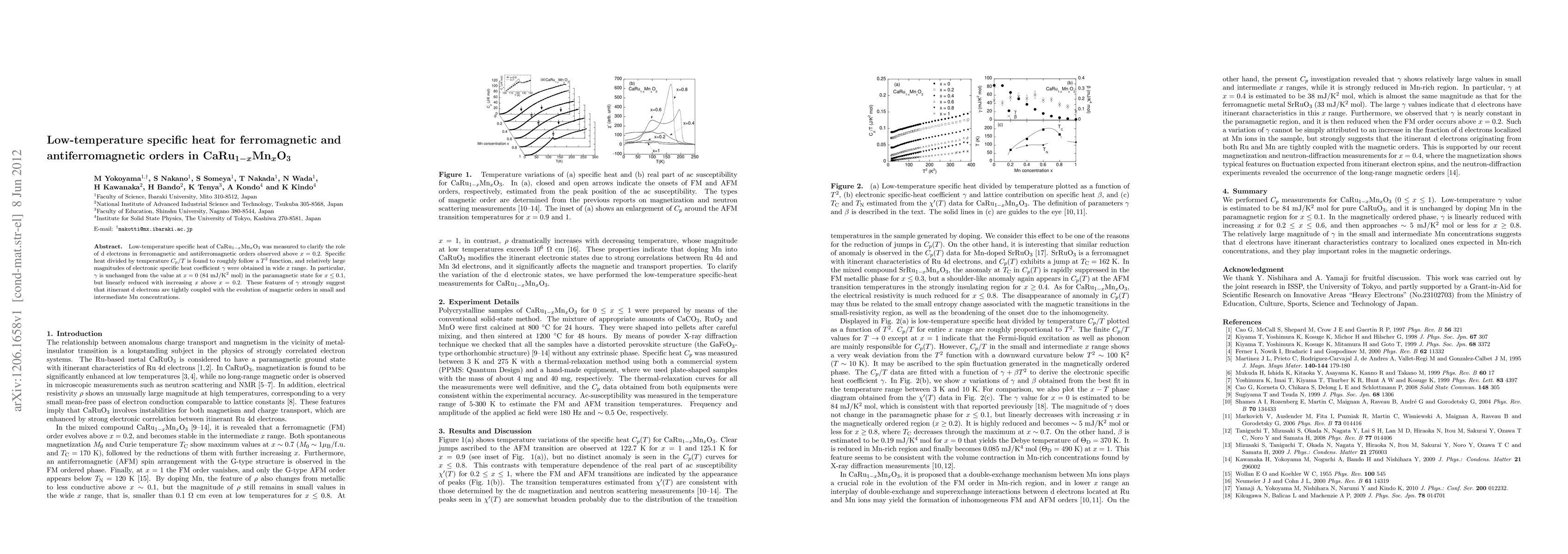 Low-temperature specific heat of CaRu1-xMnxO3 was measured to clarify the role of d electrons in ferromagnetic and antiferromagnetic orders observed above x=0.2. Specific heat divided by temperature C_p/T is found to roughly follow a T^2 function, and relatively large magnitudes of electronic specific heat coefficient gamma were obtained in wide x range. In particular, gamma is unchanged from the value at x=0 (84 mJ/K^2 mol) in the paramagnetic state for x<=0.1, but linearly reduced with increasing x above x= 0.2. These features of gamma strongly suggest that itinerant d electrons are tightly coupled with the evolution of magnetic orders in small and intermediate Mn concentrations.