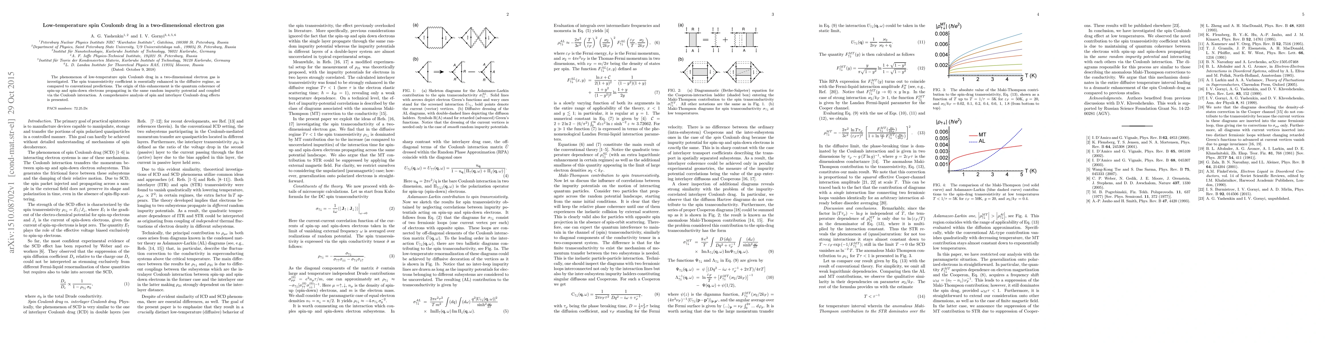 Summary: This study investigates low-temperature spin Coulomb drag in a two-dimensional electron gas, revealing significant enhancement in spin transresistivity due to quantum coherence in electron spin states, and provides a detailed analysis of spin and interlayer Coulomb drag effects.