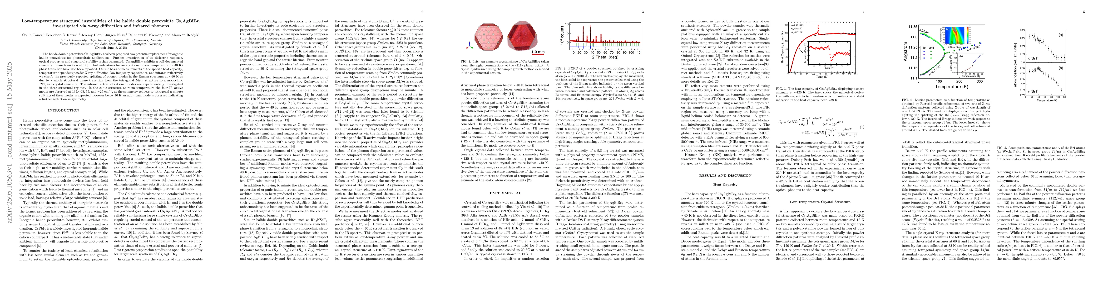 Researchers investigated the structural stability of Cs2AgBiBr6 at low temperatures using x-ray diffraction and infrared phonons, revealing a subtle phase transition from cubic to monoclinic crystal structures.