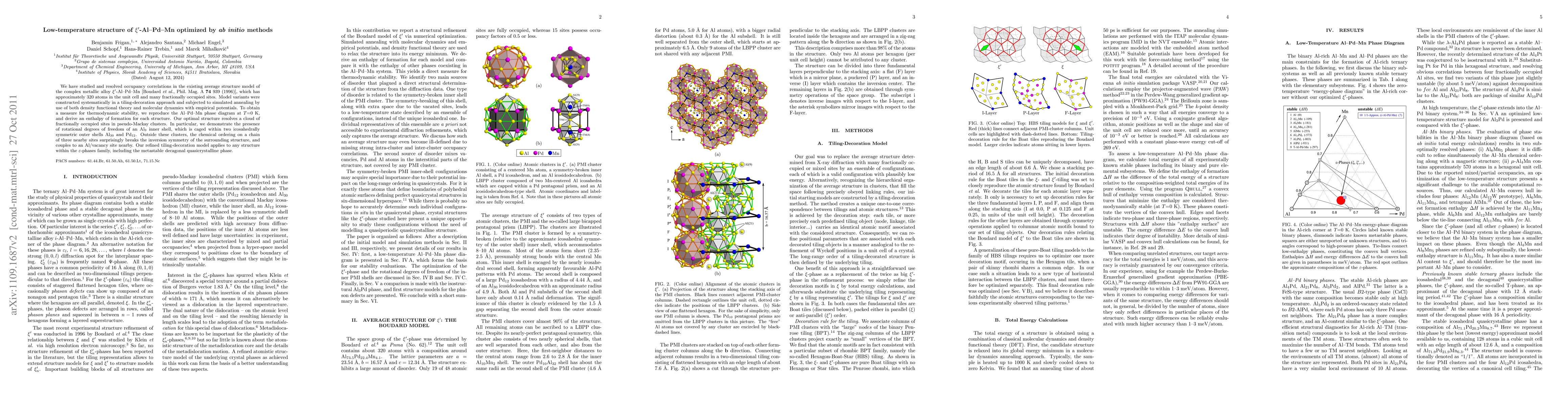 We have studied and resolved occupancy correlations in the existing average structure model of the complex metallic alloy xi'-Al-Pd-Mn [Boudard et al., Phil. Mag. A, 74, 939 (1996)], which has approximately 320 atoms in the unit cell and many fractionally occupied sites. Model variants were constructed systematically in a tiling-decoration approach and subjected to simulated annealing by use of both density functional theory and molecular dynamics with empirical potentials. To obtain a measure for thermodynamic stability, we reproduce the Al-Pd-Mn phase diagram at T=0K, and derive an enthalpy of formation for each structure. Our optimal structure resolves a cloud of fractionally occupied sites in pseudo-Mackay clusters. In particular, we demonstrate the presence of rotational degrees of freedom of an Al9 inner shell, which is caged within two icosahedrally symmetric outer shells Al30 and Pd12. Outside these clusters, the chemical ordering on a chain of three nearby sites surprisingly breaks the inversion symmetry of the surrounding structure, and couples to an Al/vacancy site nearby. Our refined tiling-decoration model applies to any structure within the epsilon-phases family, including the metastable decagonal quasicrystalline phase.