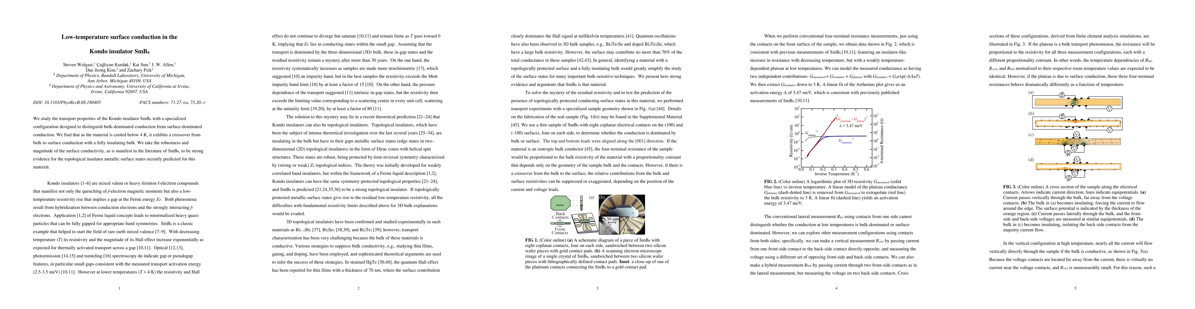 This paper investigates the transport properties of the Kondo insulator SmB$_6$, revealing that below 4 K, the material transitions from bulk to surface conduction, with the bulk remaining insulating. The findings support the existence of topological insulator metallic surface states predicted for SmB$_6$.