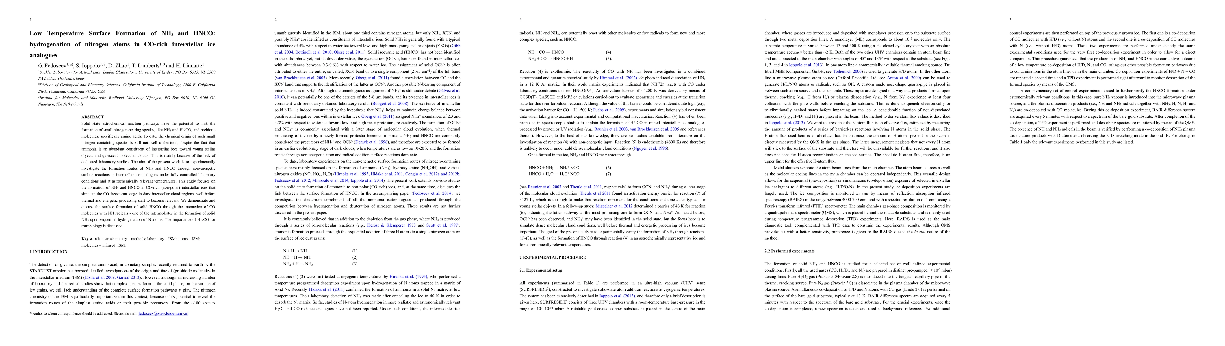 This study investigates the formation of NH3 and HNCO in CO-rich interstellar ice analogues at low temperatures, revealing the formation of HNCO via the interaction of CO with NH radicals, providing insights into the chemical origins of nitrogen-bearing prebiotic molecules. The findings highlight the significance of HNCO in astrobiology.