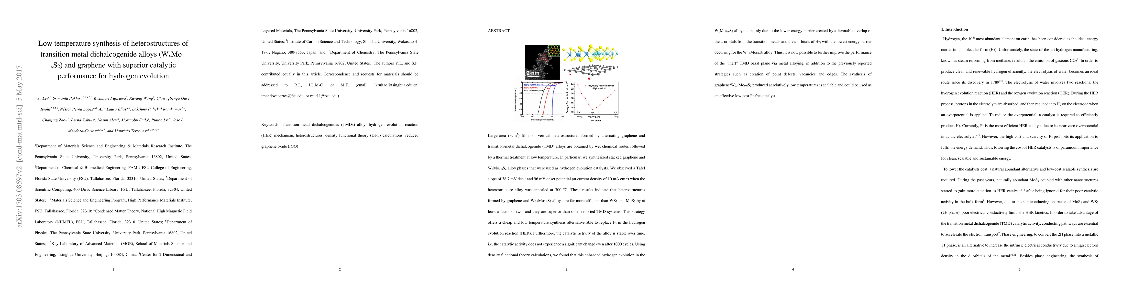 Researchers developed a low-temperature method to synthesize heterostructures of transition metal dichalcogenide alloys and graphene, achieving superior catalytic performance for hydrogen evolution.
