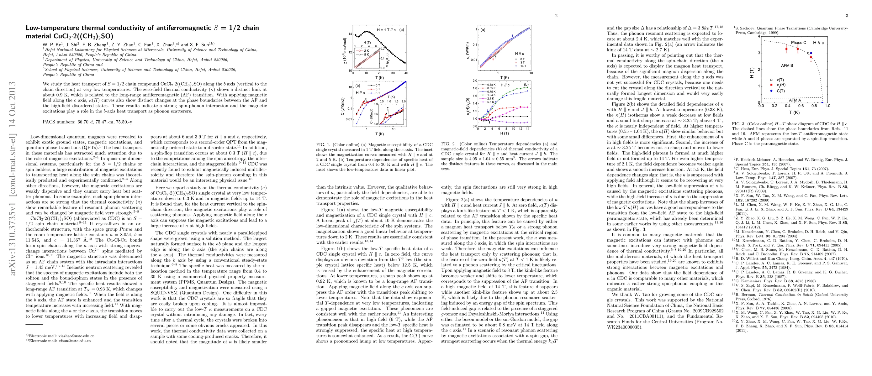 We study the heat transport of S = 1/2 chain compound CuCl_2$\cdot$2((CH_3)_2SO) along the b axis (vertical to the chain direction) at very low temperatures. The zero-field thermal conductivity (\kappa) shows a distinct kink at about 0.9 K, which is related to the long-range antiferromagnetic (AF) transition. With applying magnetic field along the c axis, \kappa(H) curves also show distinct changes at the phase boundaries between the AF and the high-field disordered states. These results indicate a strong spin-phonon interaction and the magnetic excitations play a role in the b-axis heat transport as phonon scatterers.