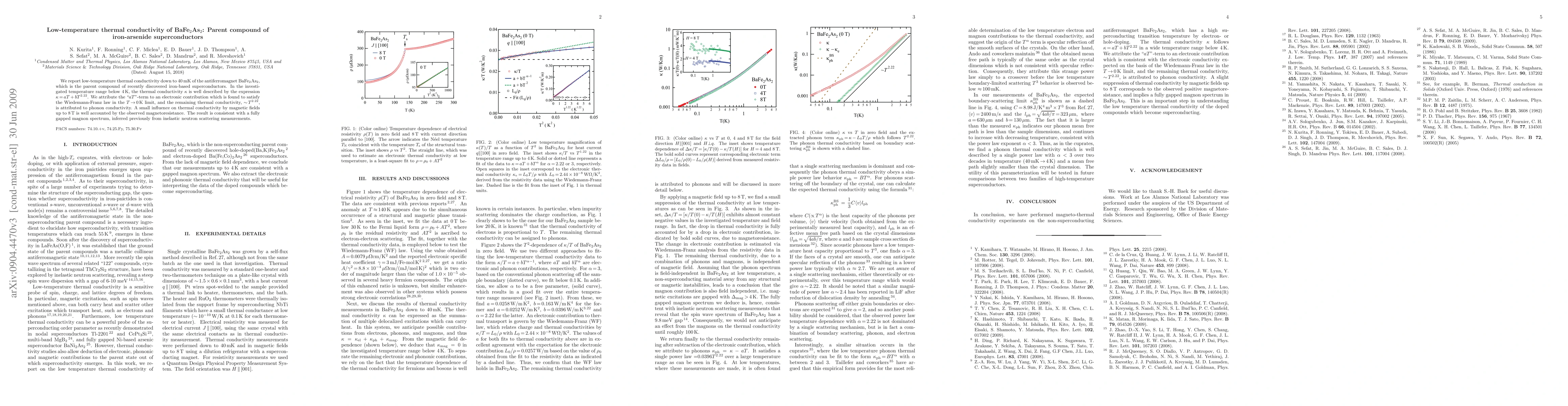 This study investigates the low-temperature thermal conductivity of BaFe$_2$As$_2$, a parent compound of iron-based superconductors, finding it follows $\kappa$ = $aT$ + $bT^{2.22}$ below 4 K. The $aT$ term is attributed to electronic contributions obeying the Wiedemann-Franz law, while the $T^{2.22}$ term is identified as phonon conductivity.