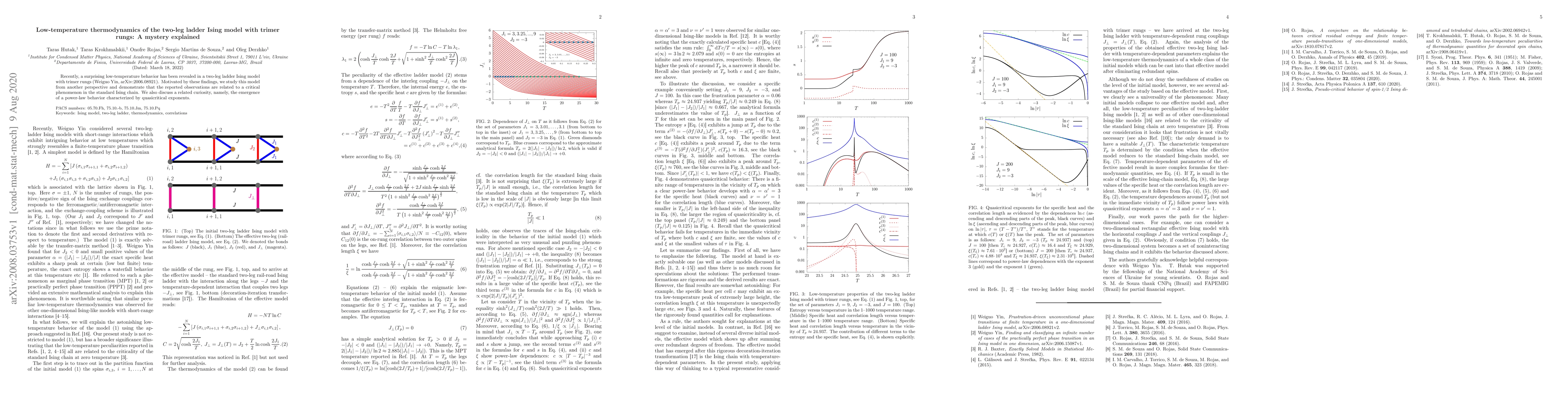 Recently, a surprising low-temperature behavior has been revealed in a two-leg ladder Ising model with trimer rungs (Weiguo Yin, arXiv:2006.08921). Motivated by these findings, we study this model from another perspective and demonstrate that the reported observations are related to a critical phenomenon in the standard Ising chain. We also discuss a related curiosity, namely, the emergence of a power-law behavior characterized by quasicritical exponents.