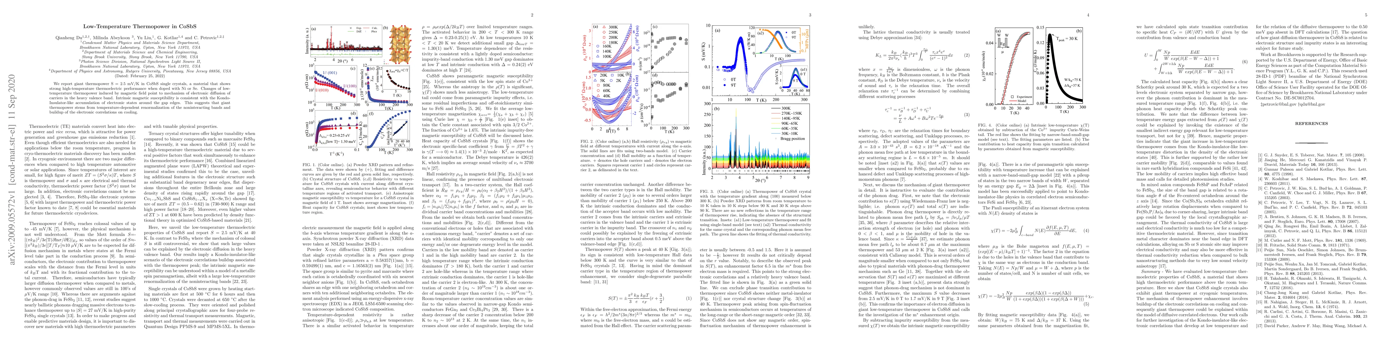 Researchers discovered a material called CoSbS that exhibits giant thermopower of 2.5 mV/K at low temperatures, which is thought to result from temperature-dependent renormalization of non-interacting bands and the buildup of electronic correlations.