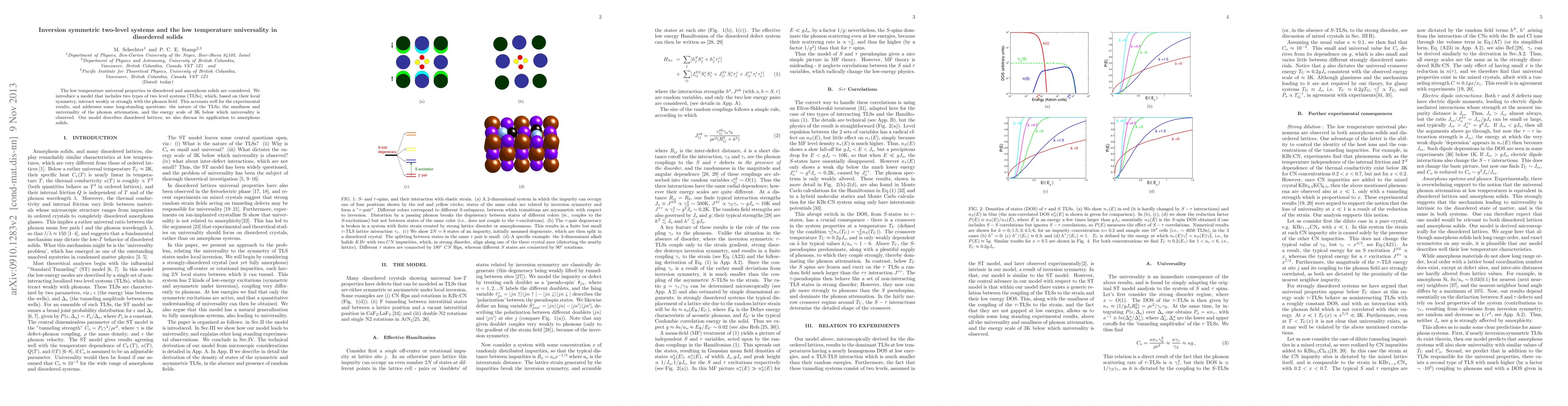 The research introduces a model that includes two types of two-level systems (TLSs) based on local symmetry, interacting weakly or strongly with the phonon field, to explain low-temperature universal properties in disordered and amorphous solids.