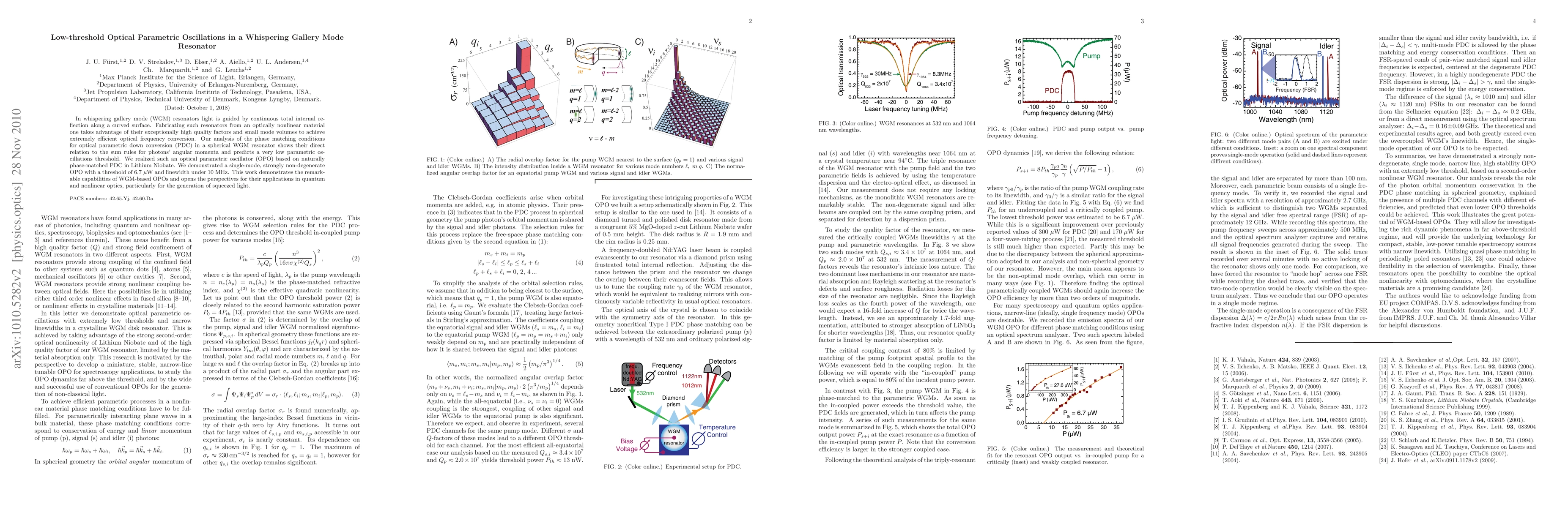 This paper investigates low-threshold optical parametric oscillations in whispering gallery mode resonators, achieving a single-mode, non-degenerate optical parametric oscillator with a threshold of 6.7 micro-W. The study highlights the potential for these resonators in quantum and nonlinear optics, particularly for generating squeezed light.
