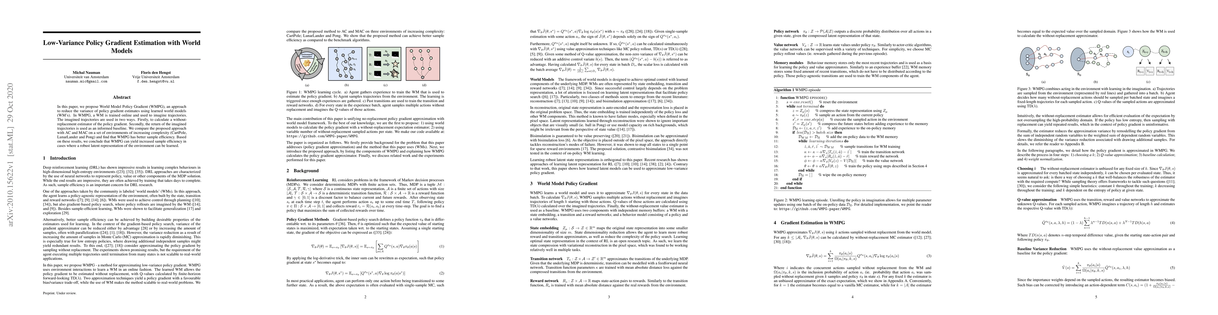 This paper proposes a method called World Model Policy Gradient (WMPG) that uses learned world models to reduce the variance of policy gradient estimates, resulting in better sample efficiency in complex environments.