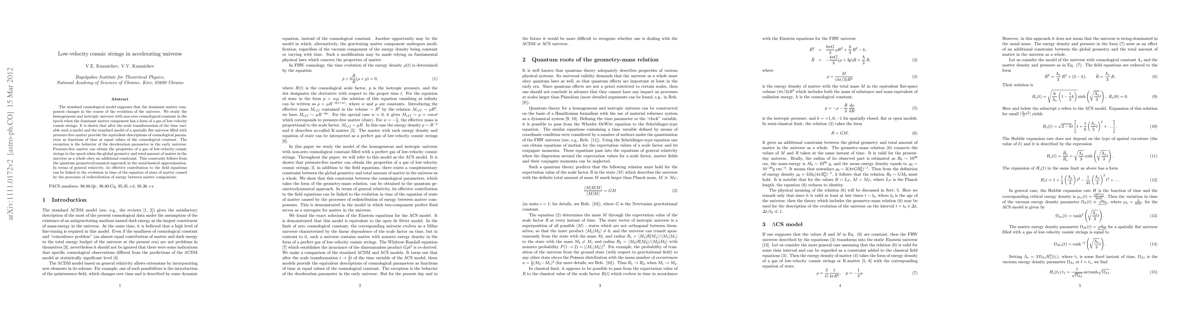 This paper explores a homogeneous and isotropic universe model with a non-zero cosmological constant, where the dominant matter component is a gas of low-velocity cosmic strings. It demonstrates that this model provides equivalent cosmological parameter descriptions to the standard model, except for the early universe's deceleration parameter, under a constraint derived from quantum geometrodynamics.