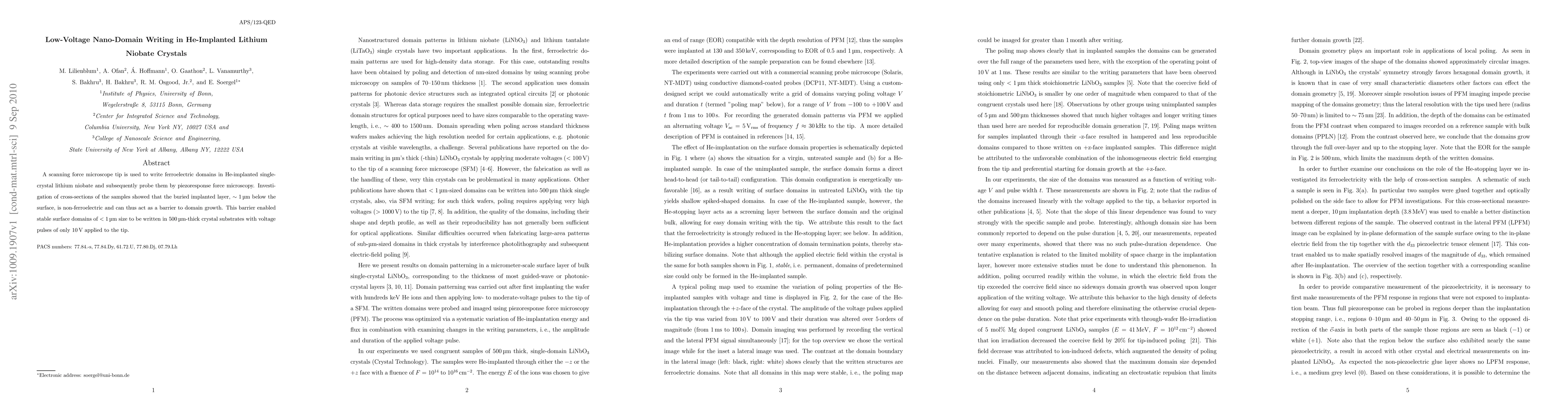 Researchers created tiny ferroelectric domains in lithium niobate crystals using a low-voltage technique, enabling small domain sizes with minimal voltage application.