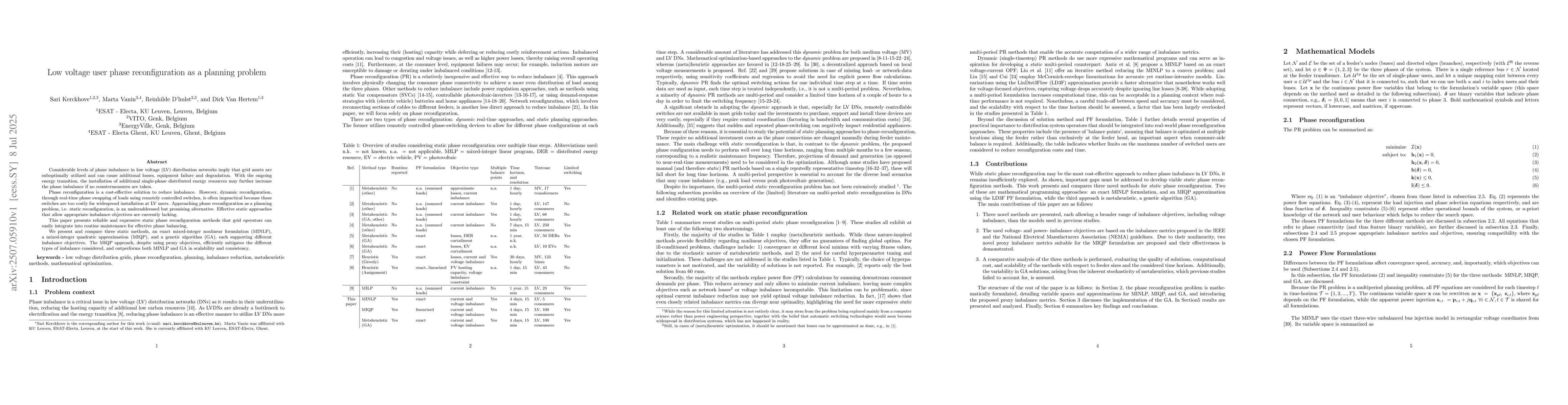 This work stands out by addressing phase reconfiguration as a planning problem (static reconfiguration) and proposing effective methods that can be easily integrated into routine maintenance. It introduces proxy objectives for the MIQP approach, which outperforms other methods in scalability and consistency.