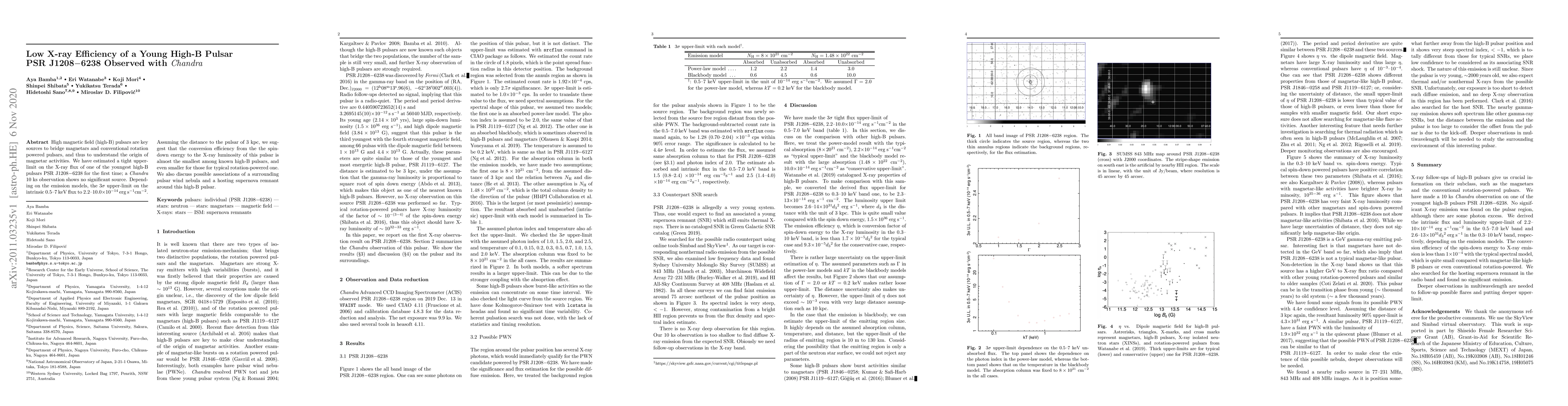 High magnetic field (high-B) pulsars are key sources to bridge magnetars and conventional rotation powered pulsars, and thus to understand the origin of magnetar activities. We have estimated a tight upper-limit on the X-ray flux of one of the youngest high-B pulsars PSR J1208-6238 for the first time; a Chandra 10 ks observation shows no significant source. Depending on the emission models, the 3sigma upper-limit on the intrinsic 0.5-7 keV flux to (2.2-10.0)e-14 erg/s/cm2.