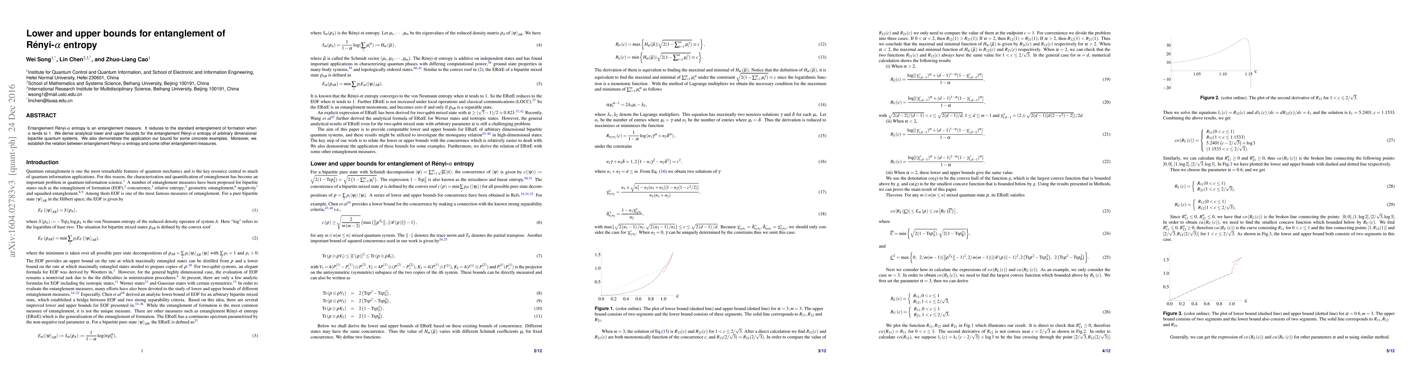 Entanglement R\'enyi-$\alpha$ entropy is an entanglement measure. It generalizes the entanglement of formation, and they coincide when $\alpha$ tends to 1. We derive analytical lower and upper bounds for the entanglement R\'enyi-$\alpha$ entropy of arbitrary dimensional bipartite quantum systems. We also demonstrate the application our bound for some concrete examples. Moreover, we establish the relation between entanglement R\'enyi-$\alpha$ entropy and some other entanglement measures.
