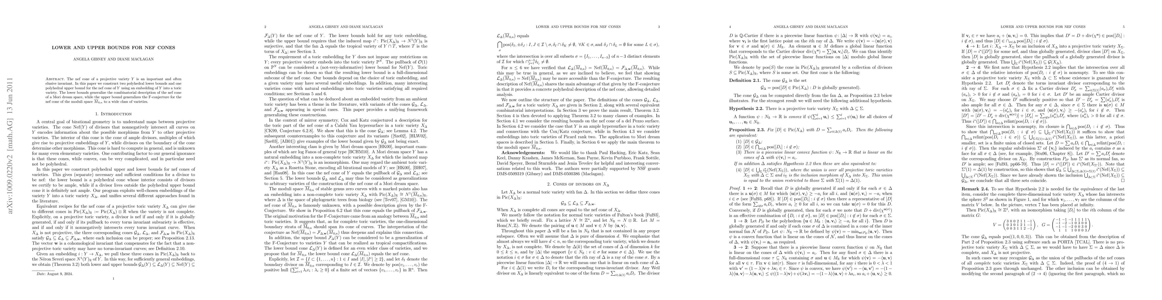 The nef cone of a projective variety Y is an important and often elusive invariant. In this paper we construct two polyhedral lower bounds and one polyhedral upper bound for the nef cone of Y using an embedding of Y into a toric variety. The lower bounds generalize the combinatorial description of the nef cone of a Mori dream space, while the upper bound generalizes the F-conjecture for the nef cone of the moduli space \bar{M}_{0,n} to a wide class of varieties.