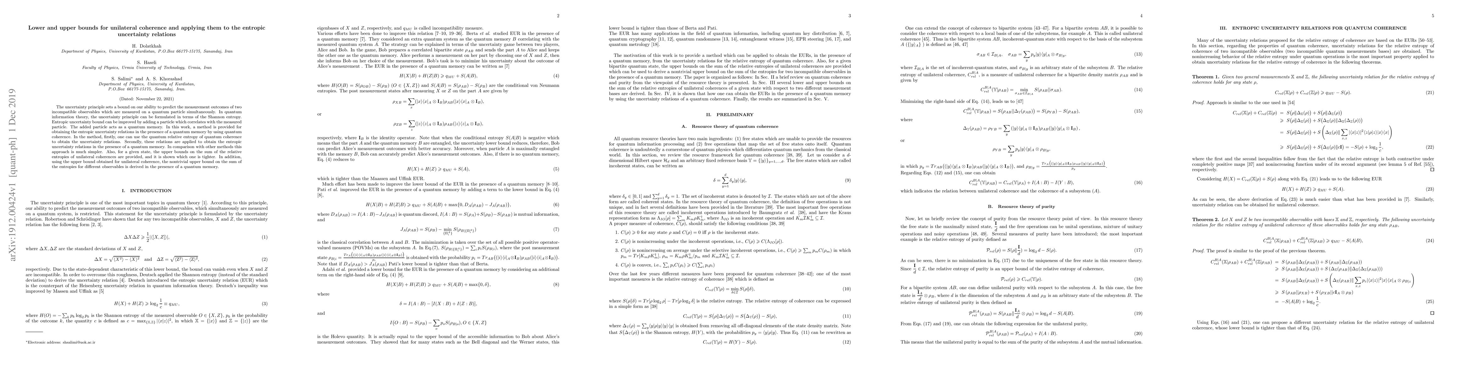 This paper develops a method to derive entropic uncertainty relations using quantum coherence and relative entropy, showing how a quantum memory can improve these bounds. It also provides tighter upper bounds on the sum of unilateral coherences and derives a nontrivial upper bound on the sum of entropies for different observables in the presence of a quantum memory.
