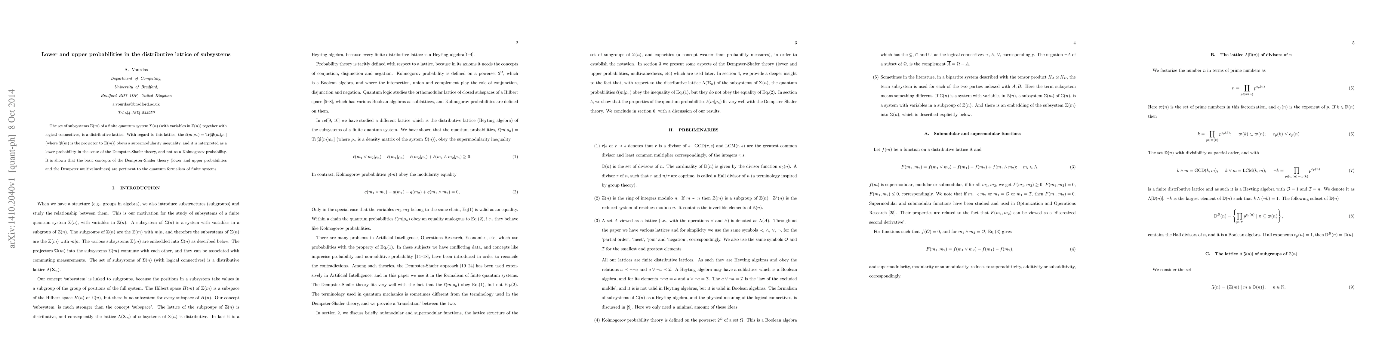 This paper explores the application of lower and upper probabilities from the Dempster-Shafer theory to the distributive lattice of subsystems in finite quantum systems, demonstrating that these concepts align with quantum formalism and supermodularity inequalities. It highlights the relevance of Dempster-Shafer theory in interpreting quantum probabilities.
