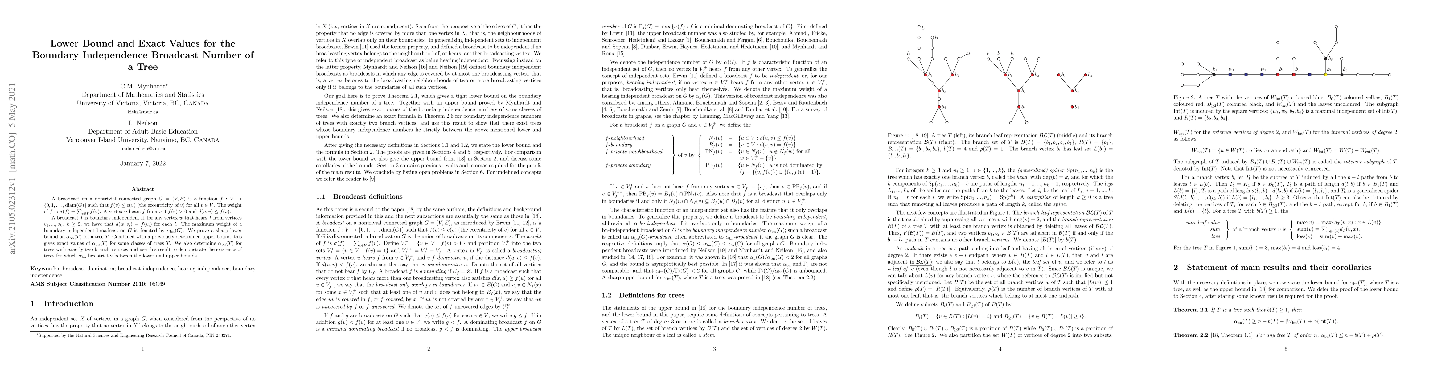 A broadcast on a nontrivial connected graph G is a function f from V(G) to the set {0,1,...,diam(G)} such that f(v) is at most the eccentricity of v for all vertices v of G. The weight of f is the sum of the function values over V(G). A vertex u hears f from v if f(v) is positive and u is within distance f(v) from v. A broadcast f is boundary independent if any vertex that hears f from two or more vertices is at distance f(v) from each such vertex v. The maximum weight of a boundary independent broadcast on G is denoted by {\alpha}_{bn}(G). We prove a sharp lower bound on {\alpha}_{bn}(T) for a tree T. Combined with a previously determined upper bound, this gives exact values of {\alpha}_{bn}(T) for some classes of trees T. We also determine {\alpha}_{bn}(T) for trees with exactly two branch vertices and use this result to demonstrate the existence of trees for which {\alpha}_{bn} lies strictly between the lower and upper bounds.