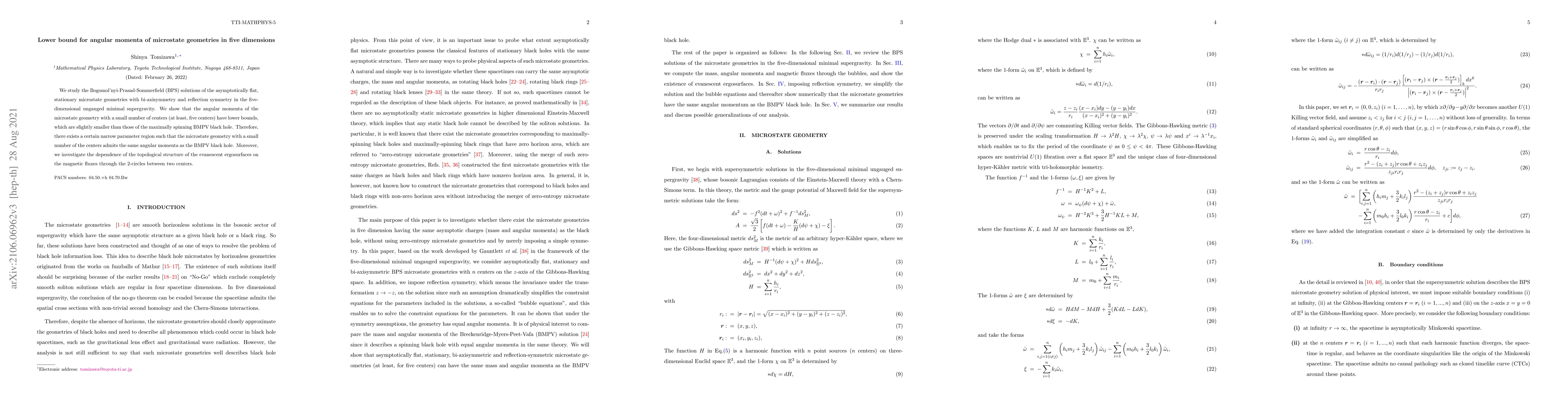 This paper investigates the angular momentum lower bounds for BPS microstate geometries in five-dimensional supergravity with bi-axisymmetry and reflection symmetry. It finds that microstates with at least five centers have angular momenta slightly below those of the maximally spinning BMPV black hole, indicating a narrow parameter region where microstates can match the black hole's angular momentum.