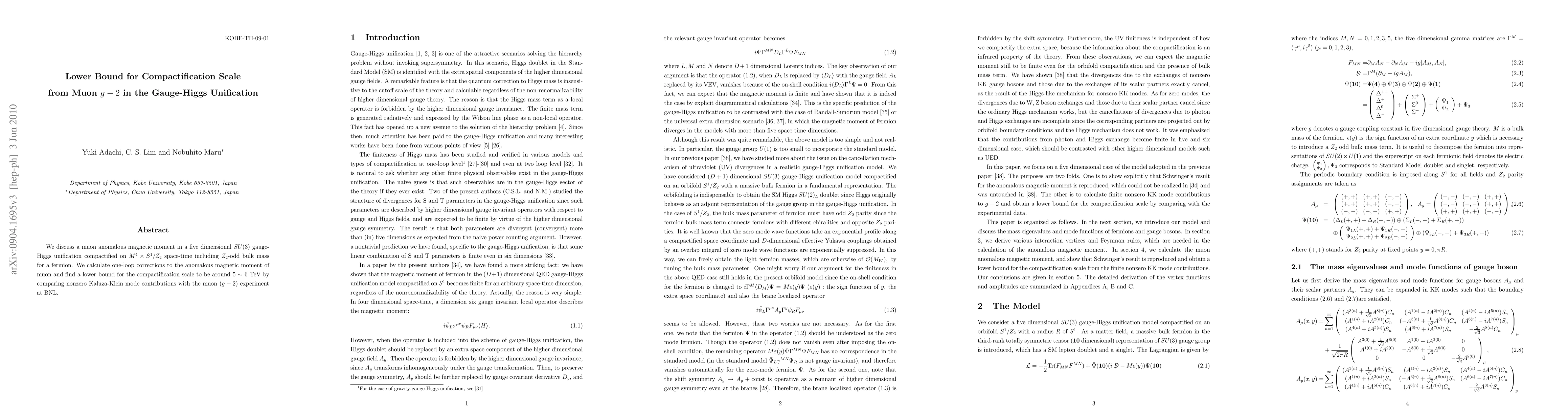 This paper investigates the muon anomalous magnetic moment in a five-dimensional SU(3) gauge-Higgs unification model compactified on M^4 × S^1/Z_2, finding that one-loop corrections necessitate a compactification scale of approximately 5-6 TeV to align with experimental results.