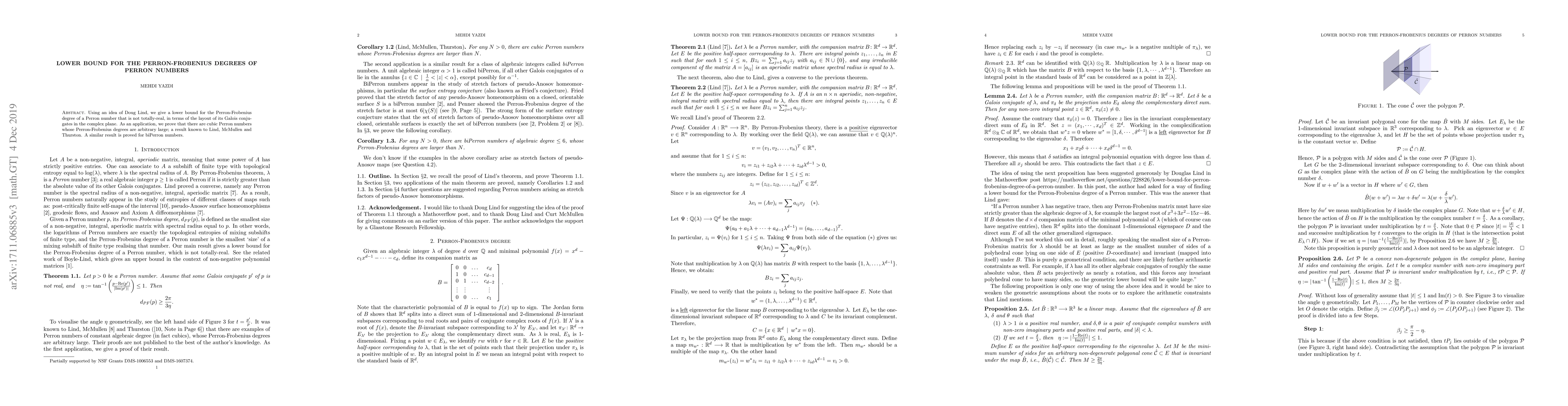 Using an idea of Doug Lind, we give a lower bound for the Perron-Frobenius degree of a Perron number that is not totally-real. As an application, we prove that there are cubic Perron numbers whose Perron-Frobenius degrees are arbitrary large; a result known to Lind, McMullen and Thurston. A similar result is proved for biPerron numbers.