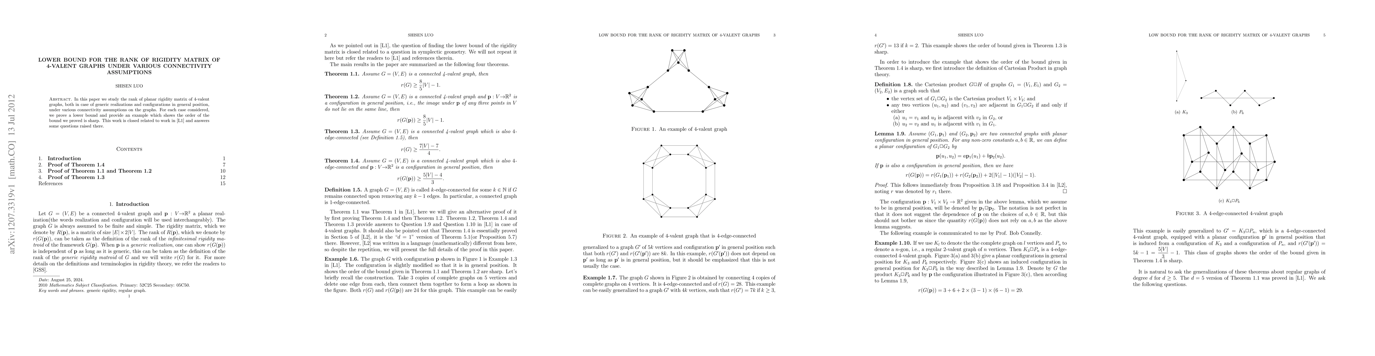 This paper establishes a lower bound for the rank of the rigidity matrix of 4-valent graphs under different connectivity assumptions, proving the bound's sharpness with specific examples. It extends prior work on graph rigidity and addresses questions raised in \cite{Luo:Rigidity}.