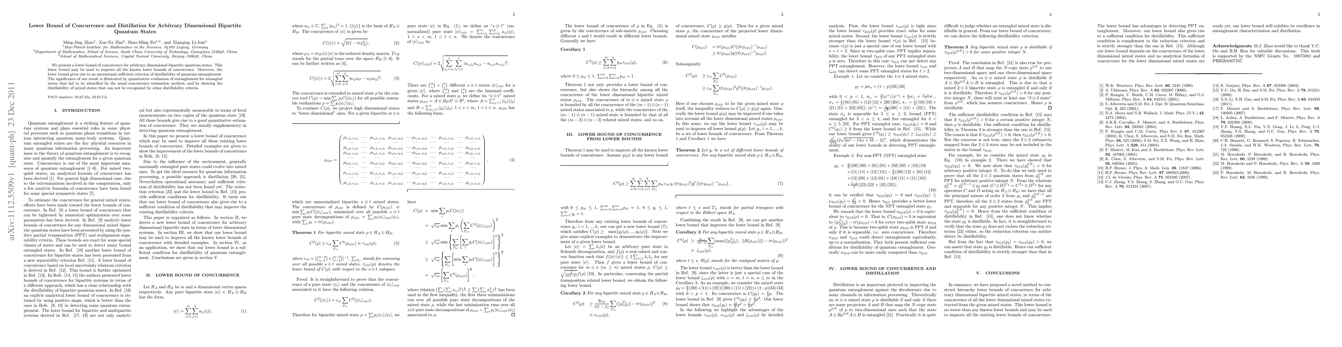 This paper establishes a new lower bound for the concurrence of arbitrary dimensional bipartite quantum states, which enhances existing concurrence bounds and provides a criterion for the distillability of quantum entanglement. It demonstrates the effectiveness of this criterion through examples of entangled states previously unrecognized by standard methods.