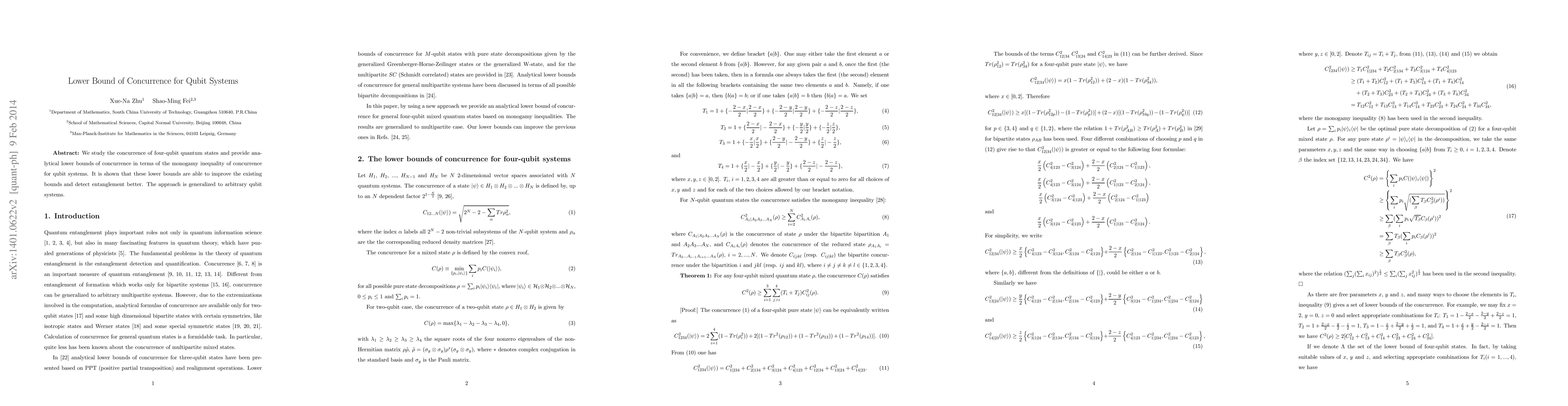 This paper establishes improved analytical lower bounds for the concurrence of four-qubit quantum states, leveraging the monogamy inequality of concurrence, and extends the method to arbitrary qubit systems for better entanglement detection.