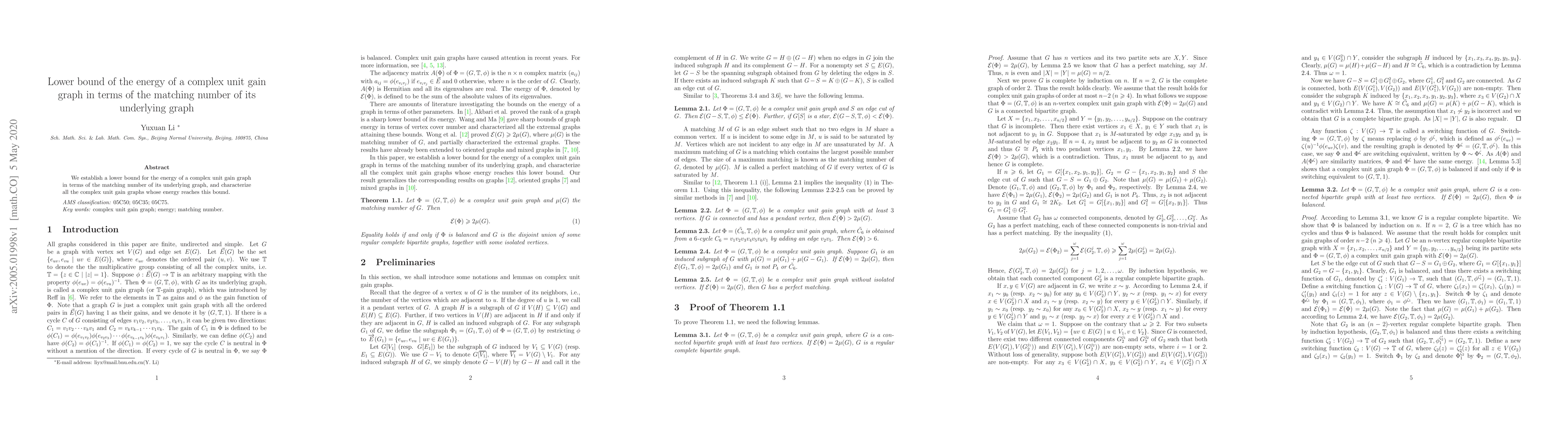 The paper establishes a lower bound for the energy of a complex unit gain graph in terms of the matching number of its underlying graph, utilizing lemmas and theorems to prove the results.