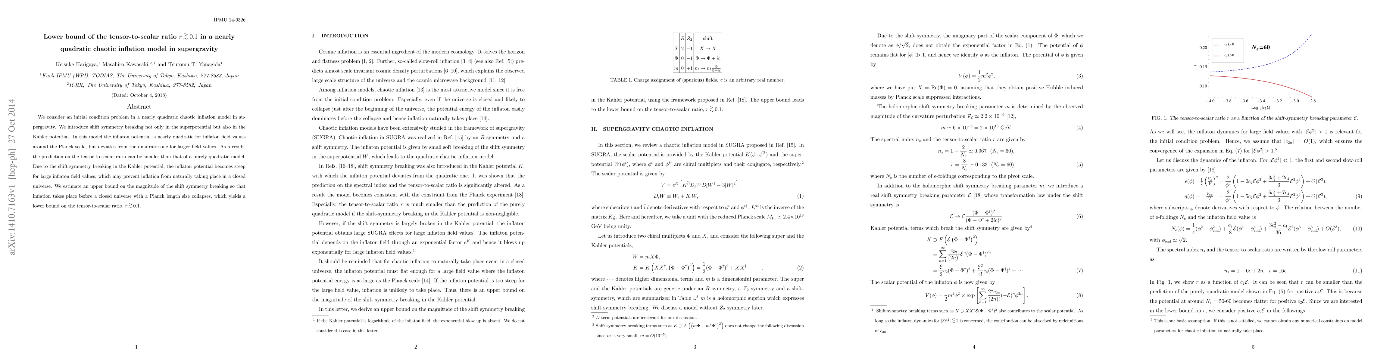We consider an initial condition problem in a nearly quadratic chaotic inflation model in supergravity. We introduce shift symmetry breaking not only in the superpotential but also in the Kahler potential. In this model the inflaton potential is nearly quadratic for inflaton field values around the Planck scale, but deviates from the quadratic one for larger field values. As a result, the prediction on the tensor-to-scalar ratio can be smaller than that of a purely quadratic model. Due to the shift symmetry breaking in the Kahler potential, the inflaton potential becomes steep for large inflaton field values, which may prevent inflation from naturally taking place in a closed universe. We estimate an upper bound on the magnitude of the shift symmetry breaking so that inflation takes place before a closed universe with a Planck length size collapses, which yields a lower bound on the tensor-to-scalar ratio, $r \mathop{}_{\textstyle \sim}^{\textstyle >} 0.1$.