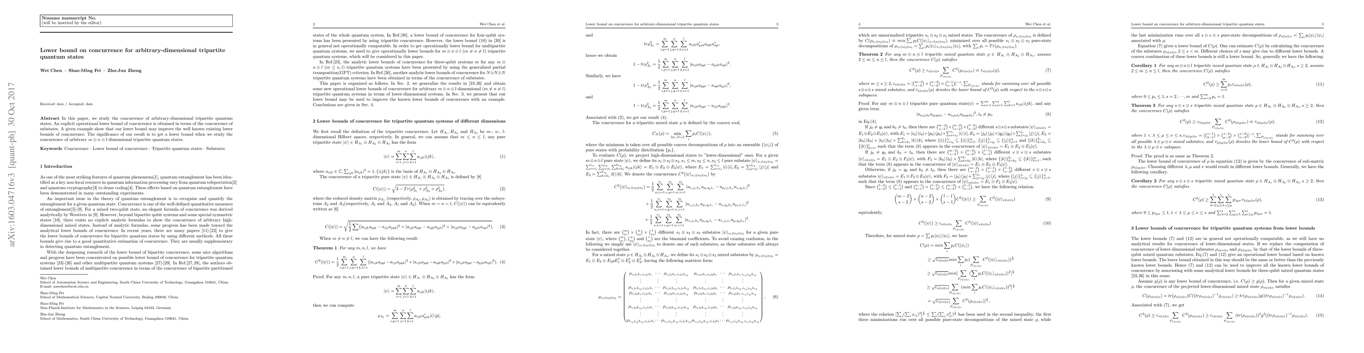 This paper establishes an explicit operational lower bound for the concurrence of arbitrary-dimensional tripartite quantum systems, improving upon existing lower bounds. The significance lies in providing a new method for studying concurrence in multipartite quantum systems.