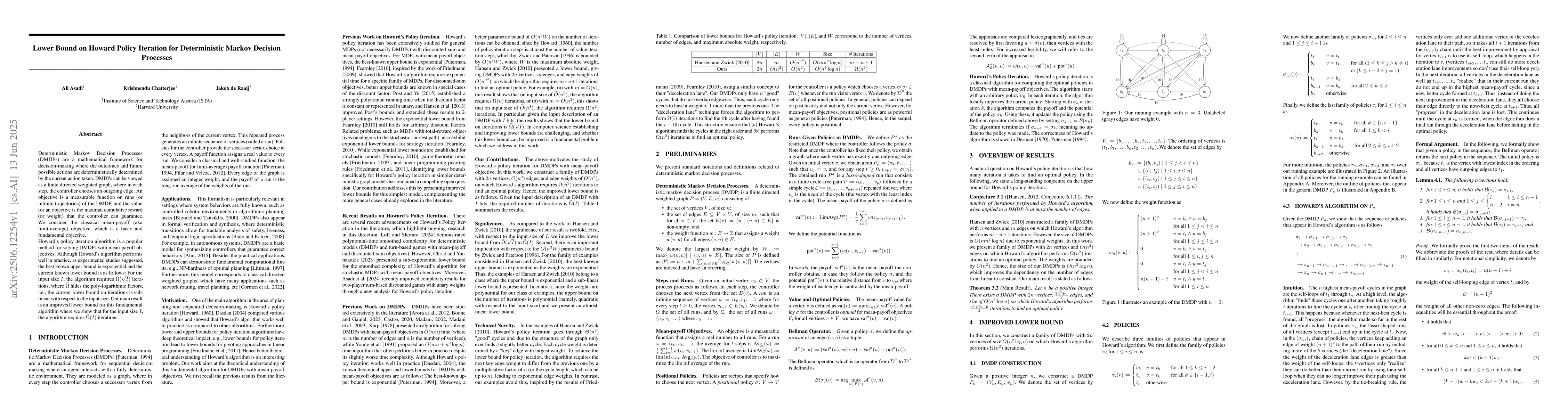 Deterministic Markov Decision Processes (DMDPs) are a mathematical framework for decision-making where the outcomes and future possible actions are deterministically determined by the current action taken. DMDPs can be viewed as a finite directed weighted graph, where in each step, the controller chooses an outgoing edge. An objective is a measurable function on runs (or infinite trajectories) of the DMDP, and the value for an objective is the maximal cumulative reward (or weight) that the controller can guarantee. We consider the classical mean-payoff (aka limit-average) objective, which is a basic and fundamental objective. Howard's policy iteration algorithm is a popular method for solving DMDPs with mean-payoff objectives. Although Howard's algorithm performs well in practice, as experimental studies suggested, the best known upper bound is exponential and the current known lower bound is as follows: For the input size $I$, the algorithm requires $\tilde{\Omega}(\sqrt{I})$ iterations, where $\tilde{\Omega}$ hides the poly-logarithmic factors, i.e., the current lower bound on iterations is sub-linear with respect to the input size. Our main result is an improved lower bound for this fundamental algorithm where we show that for the input size $I$, the algorithm requires $\tilde{\Omega}(I)$ iterations.