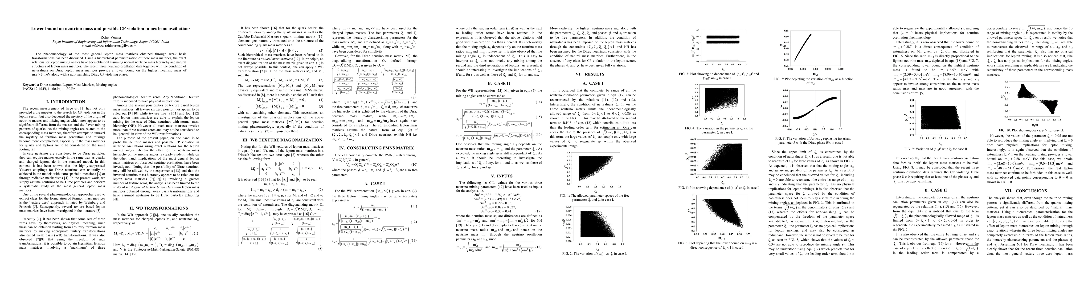 Research finds a lower bound on neutrino mass of over 3 meV with possible CP violation in neutrino oscillations.