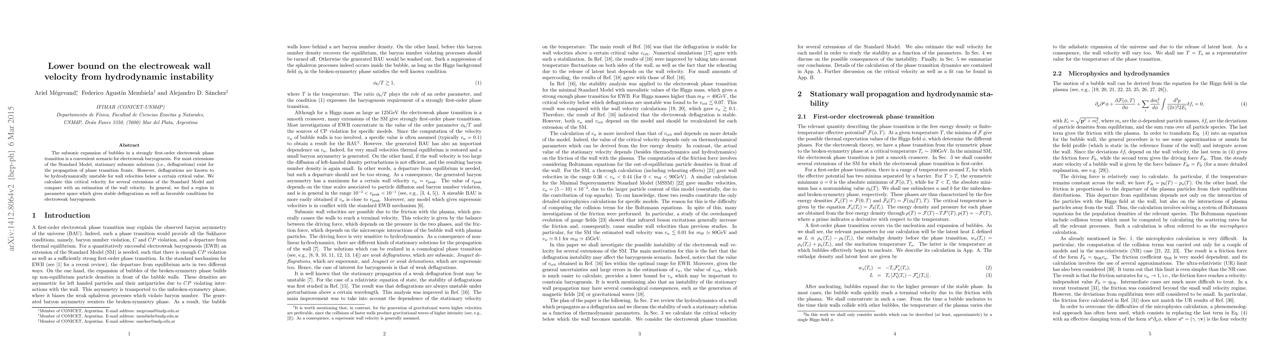 The subsonic expansion of bubbles in a strongly first-order electroweak phase transition is a convenient scenario for electroweak baryogenesis. For most extensions of the Standard Model, stationary subsonic solutions (i.e., deflagrations) exist for the propagation of phase transition fronts. However, deflagrations are known to be hydrodynamically unstable for wall velocities below a certain critical value. We calculate this critical velocity for several extensions of the Standard Model and compare with an estimation of the wall velocity. In general, we find a region in parameter space which gives stable deflagrations as well as favorable conditions for electroweak baryogenesis.