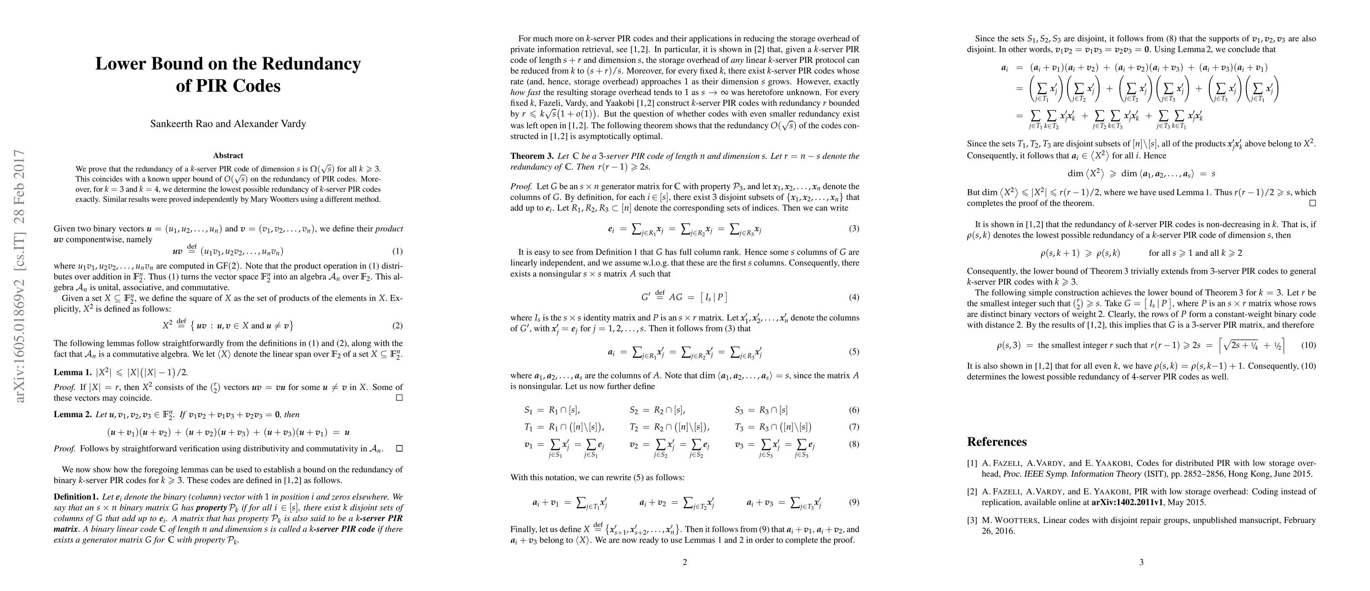We prove that the redundancy of a $k$-server PIR code of dimension $s$ is $\Omega(\sqrt{s})$ for all $k \ge 3$. This coincides with a known upper bound of $O(\sqrt{s})$ on the redundancy of PIR codes. Moreover, for $k=3$ and $k = 4$, we determine the lowest possible redundancy of $k$-server PIR codes exactly. Similar results were proved independently by Mary Wootters using a different method.