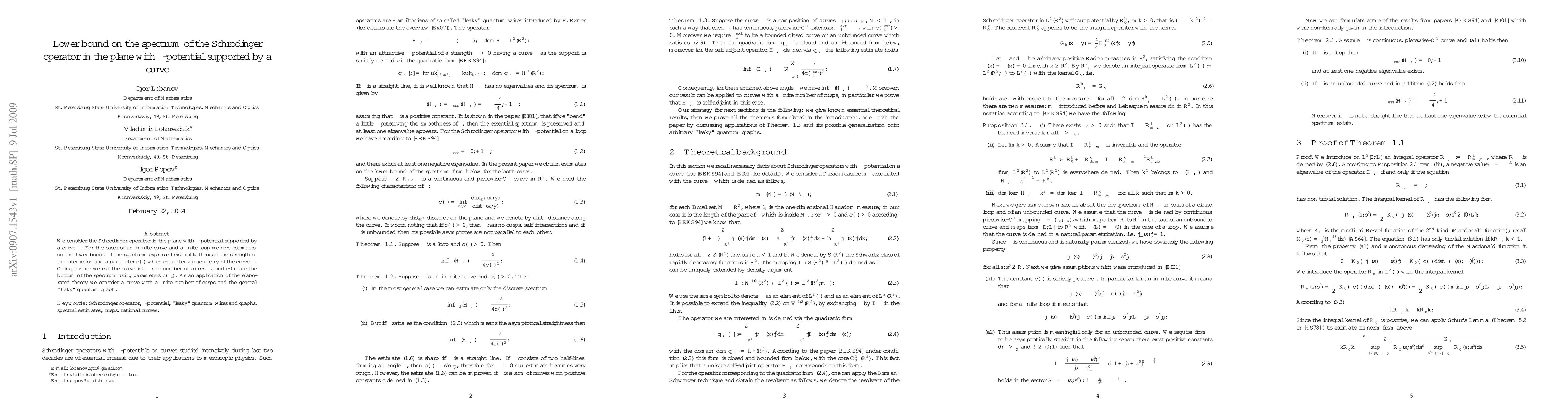 This paper establishes lower bounds on the spectrum of the Schrödinger operator in the plane with a delta-potential supported by a curve, providing explicit estimates for both infinite curves and finite loops. It also extends the theory to analyze curves with cusps and "leaky" quantum graphs.