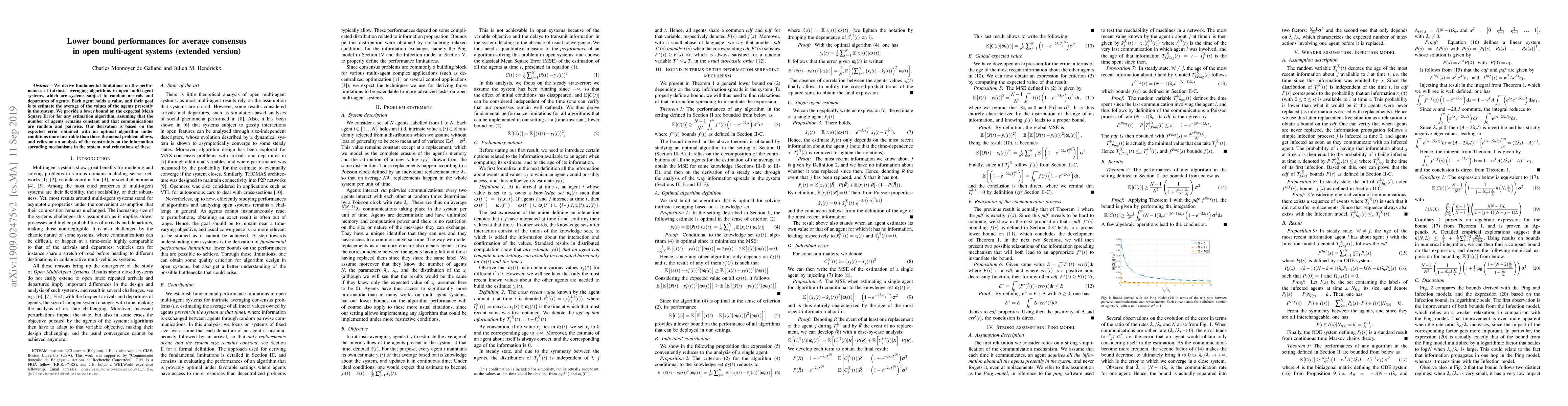 The paper presents a method to derive lower bounds on the performance of consensus algorithms in open systems using information spreading relaxations and optimal algorithm analysis.