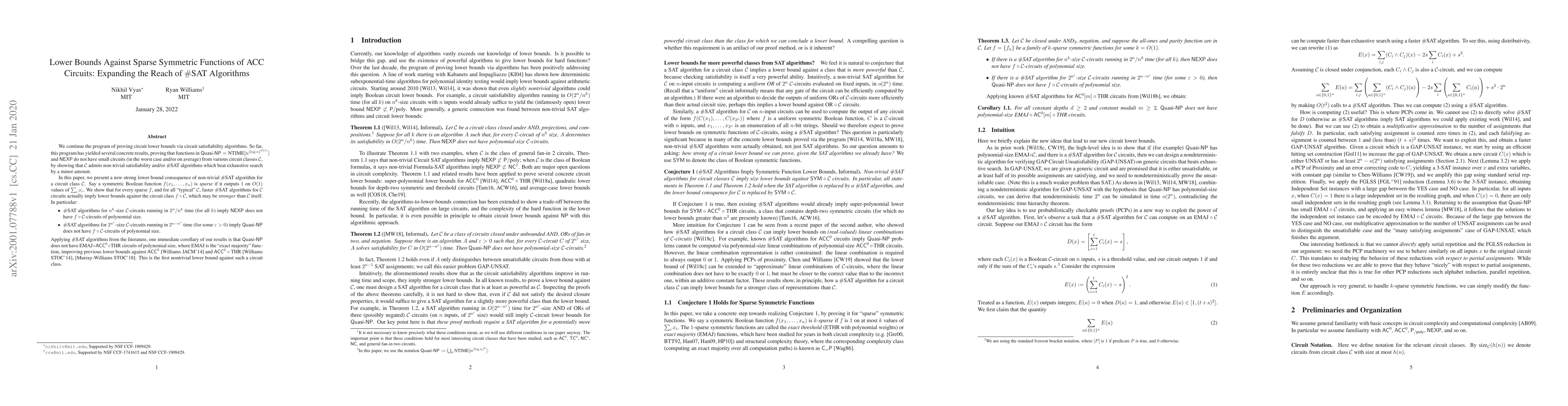 This paper establishes strong lower bounds against sparse symmetric functions of ACC circuits by leveraging non-trivial #SAT algorithms. It shows that faster #SAT algorithms for certain circuit classes imply that no polynomial-size circuits exist for specific sparse functions, notably improving previous bounds against ACC circuits.
