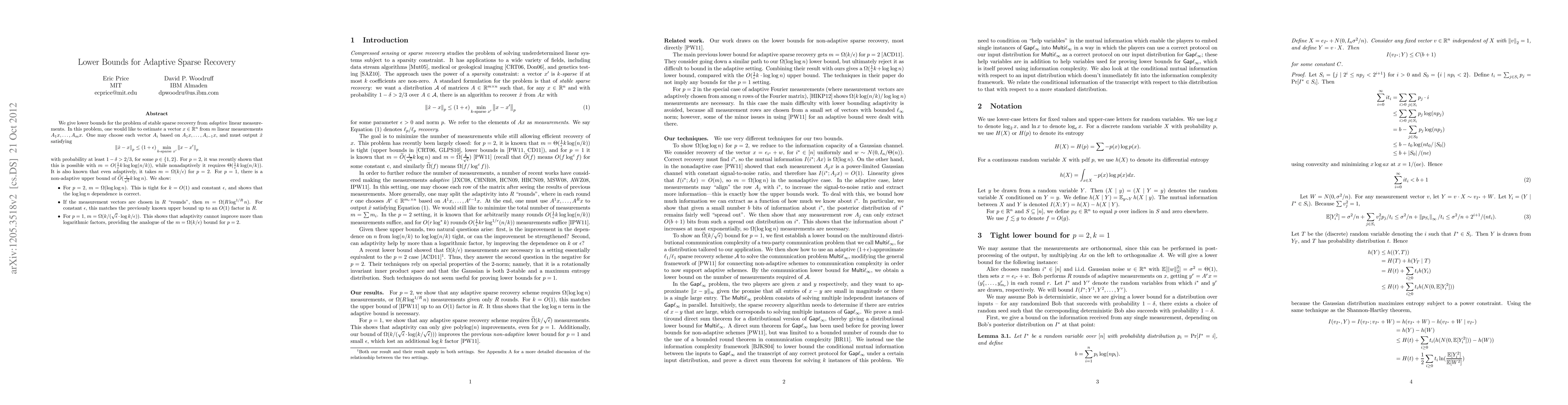 We give lower bounds for the problem of stable sparse recovery from /adaptive/ linear measurements. In this problem, one would like to estimate a vector $x \in \R^n$ from $m$ linear measurements $A_1x,..., A_mx$. One may choose each vector $A_i$ based on $A_1x,..., A_{i-1}x$, and must output $x*$ satisfying |x* - x|_p \leq (1 + \epsilon) \min_{k\text{-sparse} x'} |x - x'|_p with probability at least $1-\delta>2/3$, for some $p \in \{1,2\}$. For $p=2$, it was recently shown that this is possible with $m = O(\frac{1}{\epsilon}k \log \log (n/k))$, while nonadaptively it requires $\Theta(\frac{1}{\epsilon}k \log (n/k))$. It is also known that even adaptively, it takes $m = \Omega(k/\epsilon)$ for $p = 2$. For $p = 1$, there is a non-adaptive upper bound of $\tilde{O}(\frac{1}{\sqrt{\epsilon}} k\log n)$. We show: * For $p=2$, $m = \Omega(\log \log n)$. This is tight for $k = O(1)$ and constant $\epsilon$, and shows that the $\log \log n$ dependence is correct. * If the measurement vectors are chosen in $R$ "rounds", then $m = \Omega(R \log^{1/R} n)$. For constant $\epsilon$, this matches the previously known upper bound up to an O(1) factor in $R$. * For $p=1$, $m = \Omega(k/(\sqrt{\epsilon} \cdot \log k/\epsilon))$. This shows that adaptivity cannot improve more than logarithmic factors, providing the analog of the $m = \Omega(k/\epsilon)$ bound for $p = 2$.