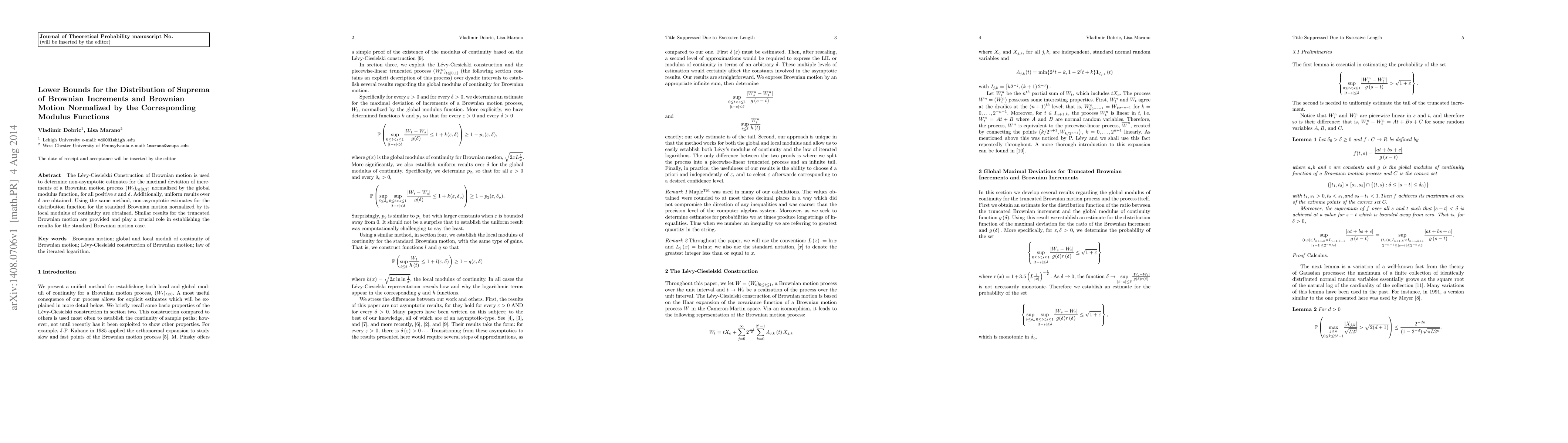 This paper uses the Lévy-Ciesielski construction to derive non-asymptotic lower bounds for the distribution of suprema of normalized Brownian increments and standard Brownian motion. It also provides similar results for truncated Brownian motion, which aids in establishing the main findings.