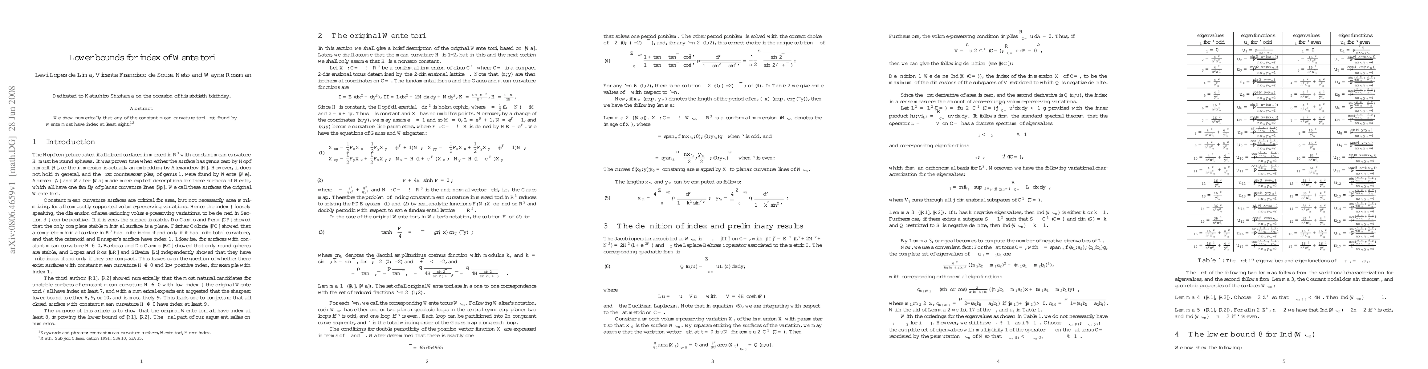 Researchers found that constant mean curvature tori by Wente have an index of at least eight.