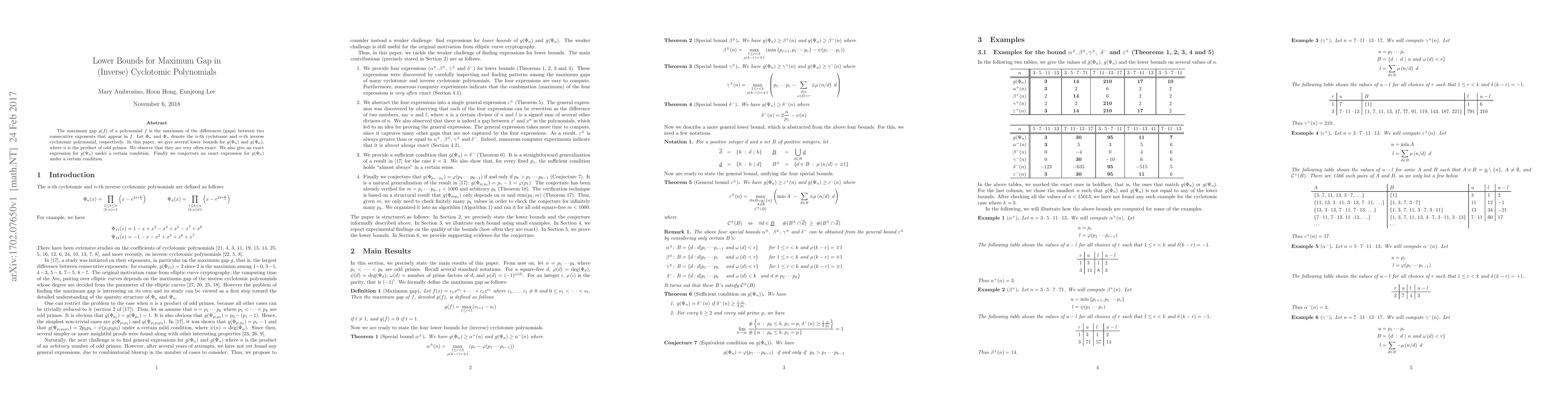 This paper establishes lower bounds for the maximum gap $g(f)$ in cyclotomic and inverse cyclotomic polynomials $\Phi_{n}$ and $\Psi_{n}$, where $n$ is the product of odd primes. The authors find these bounds to often be exact and provide an exact expression for $g(\Psi_{n})$ under specific conditions, along with a conjecture for $g(\Phi_{n})$.