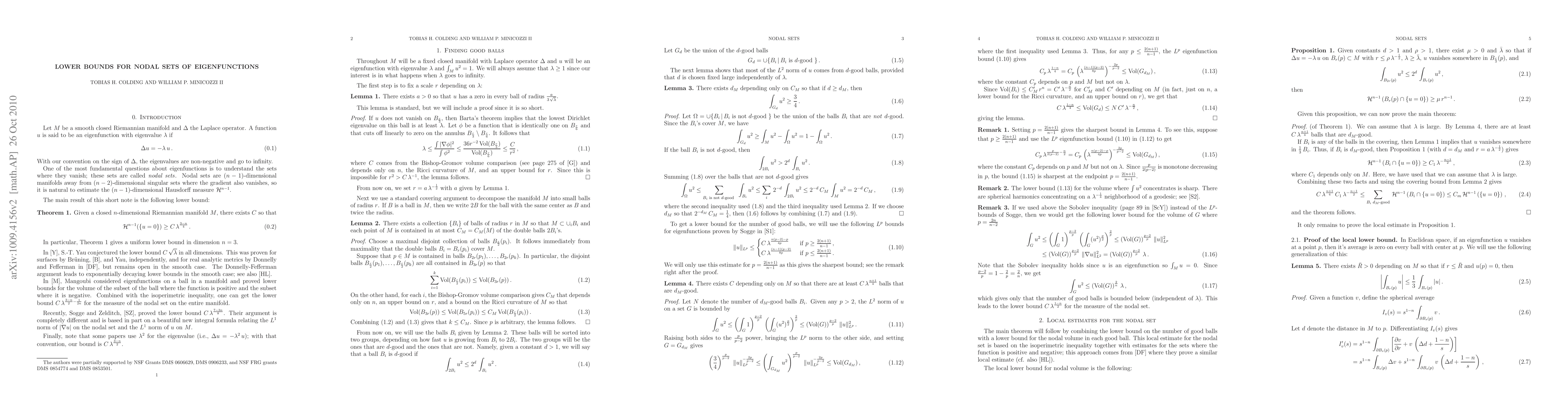 Summary: This paper establishes lower bounds for the Hausdorff measure of nodal sets of eigenfunctions, contributing to the understanding of the geometric distribution of these critical points in spectral theory. The results provide new insights into the behavior of eigenfunctions in mathematical analysis.