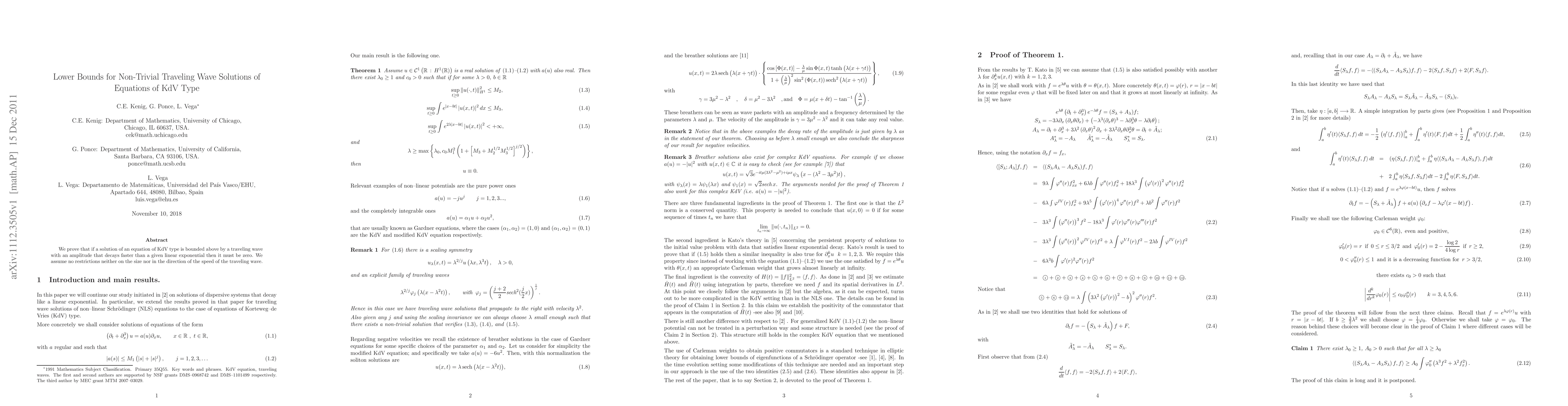 Researchers proved that if a KdV equation solution is bounded above by a decaying traveling wave, it must be zero. This implies solutions with faster-decaying waves have no non-trivial counterparts.