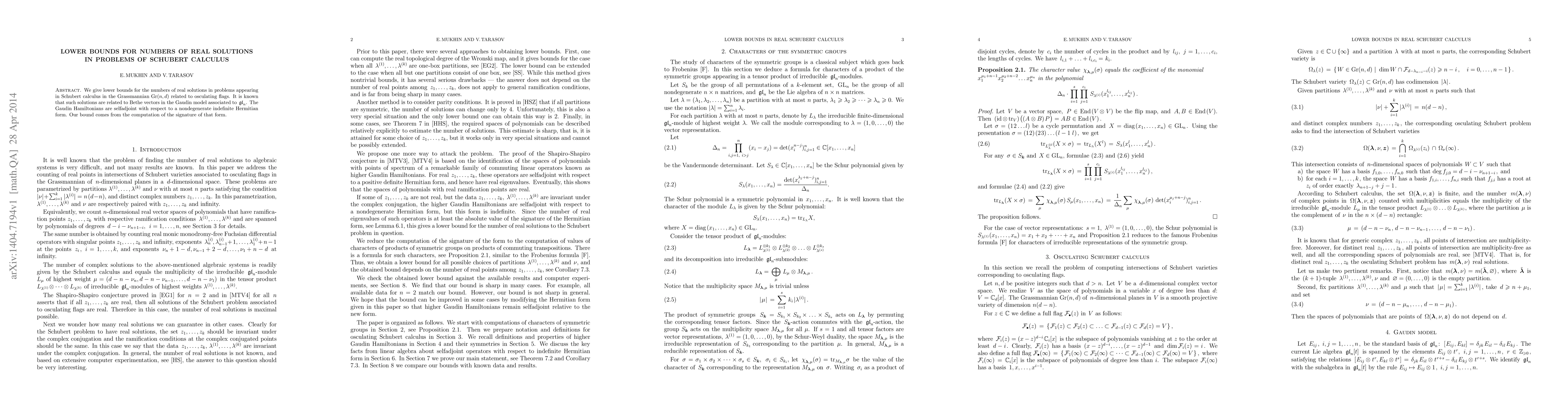 This paper establishes lower bounds for the number of real solutions in Schubert calculus problems in the Grassmannian Gr(n,d), focusing on osculating flags, and connects these solutions to Bethe vectors in the Gaudin model associated with gl(n). The bounds are derived from the computation of the signature of the nondegenerate indefinite Hermitian form on which the Gaudin Hamiltonians are selfadjoint.