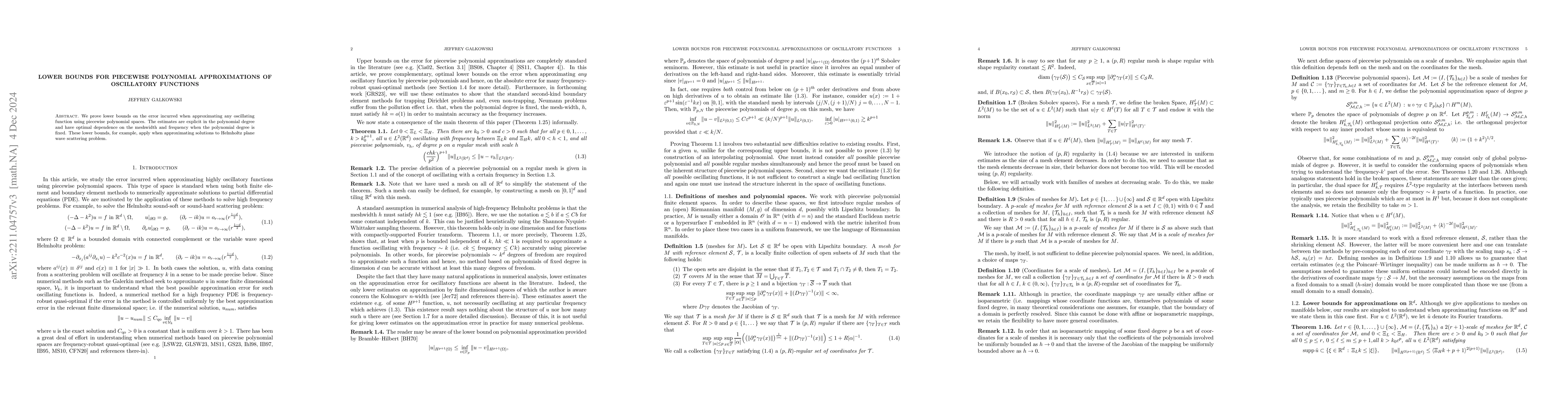 Summary: This paper establishes precise lower bounds for the approximation error when using piecewise polynomial functions to model oscillatory functions, demonstrating the inherent limitations of such approximations.