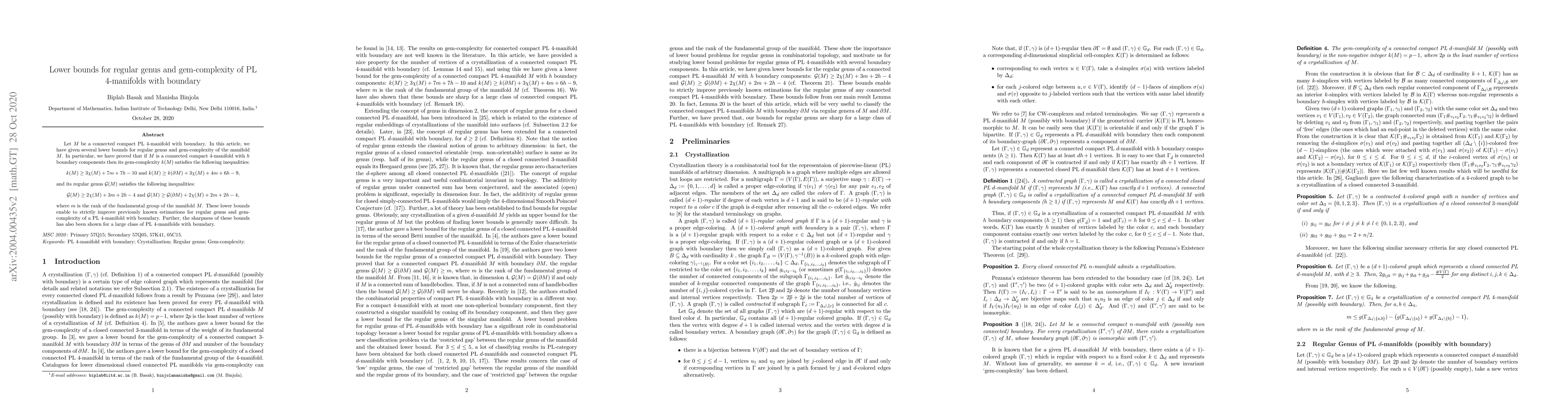 This paper establishes new lower bounds for the regular genus and gem-complexity of connected compact PL 4-manifolds with boundary, improving previous estimations. The bounds are shown to be sharp for a wide class of PL 4-manifolds.