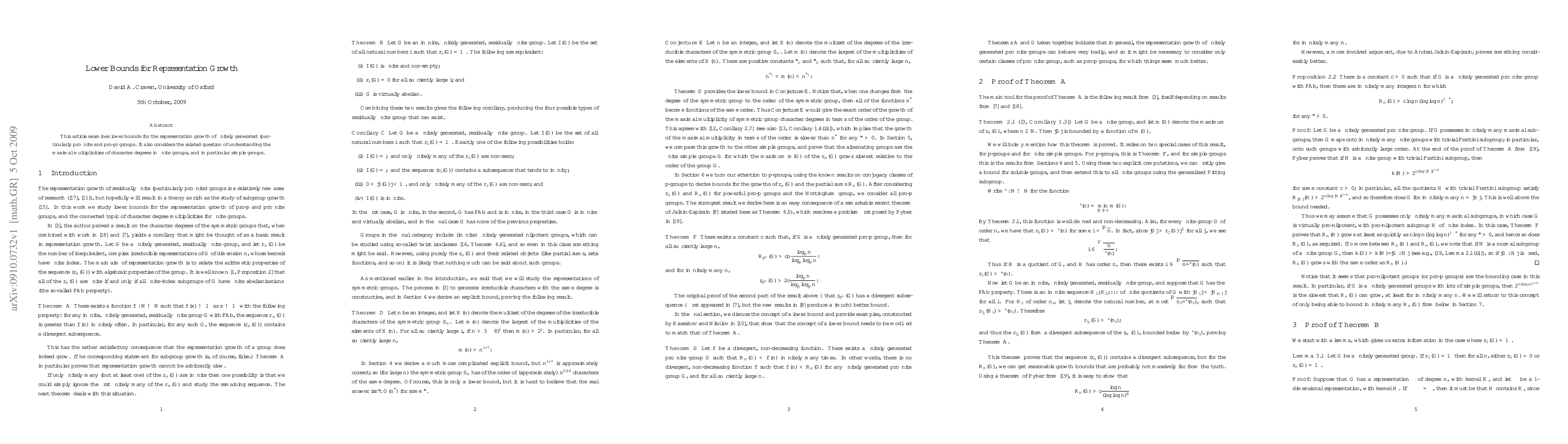 This paper explores the lower bounds for the representation growth of finitely generated groups, especially profinite and pro-p groups, and investigates the maximal multiplicities of character degrees in finite groups, particularly focusing on simple groups.