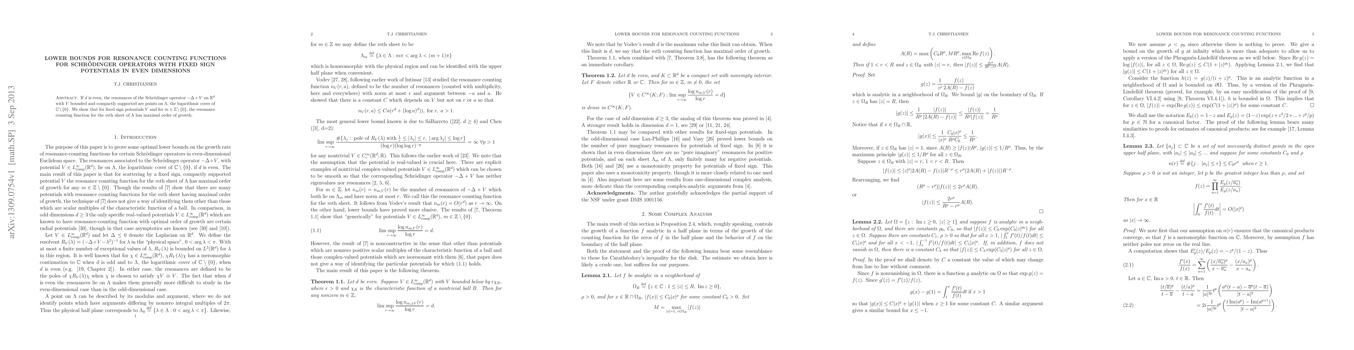 If the dimension $d$ is even, the resonances of the Schr\"odinger operator $-\Delta +V$ on ${\mathbb R}^d$ with $V$ bounded and compactly supported are points on $\Lambda$, the logarithmic cover of ${\mathbb C} \setminus \{0\}$. We show that for fixed sign potentials $V$ and for nonzero integers $m$, the resonance counting function for the $m$th sheet of $\Lambda$ has maximal order of growth.